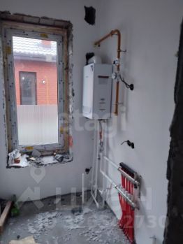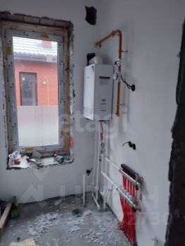 Дом построен из керамзитобетонных блоков с утеплением и облицовкой кирпичом, что обеспечивает высокую энергоэффективность. Крыша из металлочерепицы, фундамент — ленточный на буроналивных сваях. Установлены пластиковые окна с тройным стеклопакетом. Объект продается с улучшенной черновой отделкой: стяжка пола, оштукатуренные стены под обои, разведенное электричество. Система отопления комбинированная — газовый двухконтурный котел питает радиаторы и водяной теплый пол на первом этаже. Водоснабжение от скважины, канализация — септик закрытого типа на 8 куб. м.