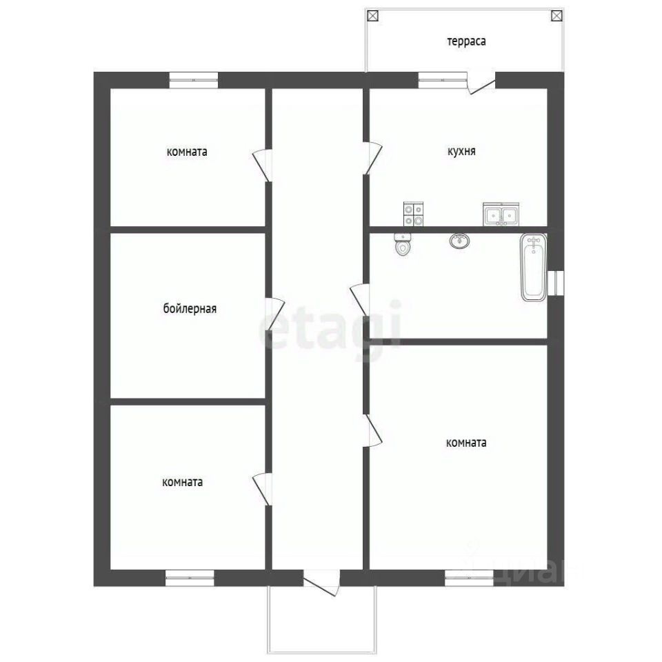 В доме удобная планировка. Широкий коридор, 3 комнаты и кухня. С кухни сделан выход на террасу. На втором этаже можно сделать гардеробную.