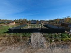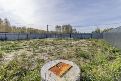 2) Забор из профилированной стали с откатными воротами и отдельной пешеходной калиткой, окружающий весь участок и отсыпанный въезд.