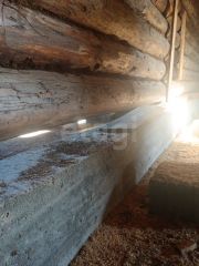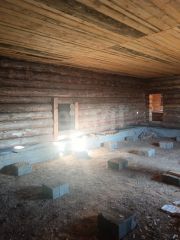 Деревянный дом из бревна диаметром 28 см, площадью 100 м², на ленточном фундаменте, потолки - черновой вариант из доски 150х25см.