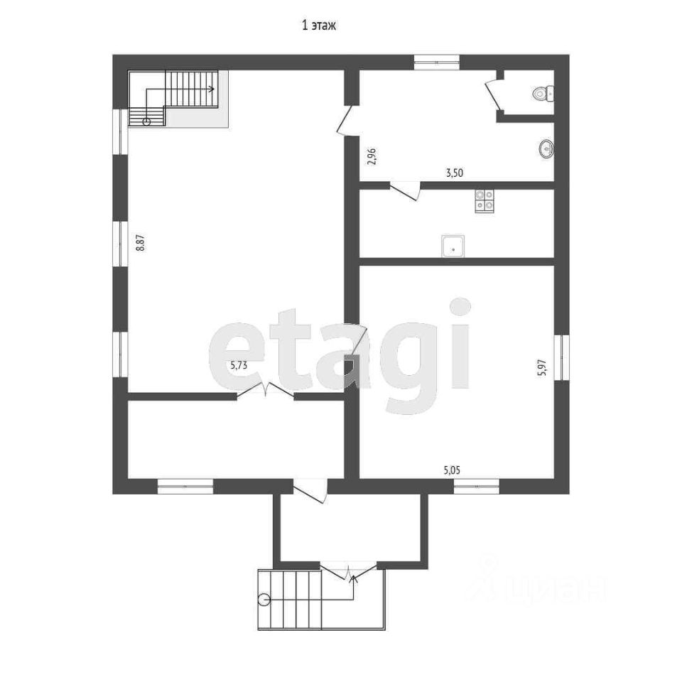 - Конструкция: кирпичный дом (силикатный кирпич), 3 этажа (цоколь, первый, второй), высота потолков — 3 м.