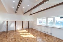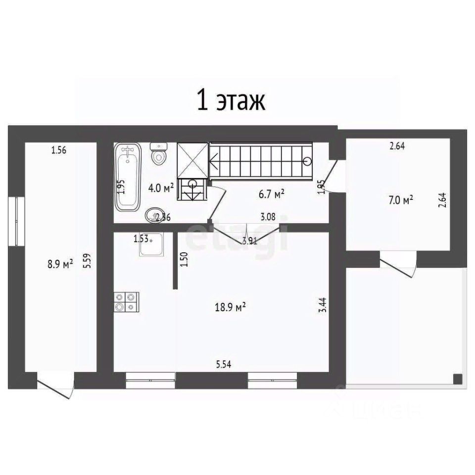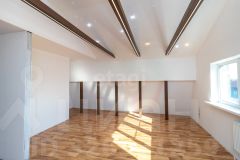 На первом этаже кухня-гостиная и санузел, на втором большая комната, гардеробная и санузел. На полу - линолеум, система теплого пола (водяной), стены под покраску.