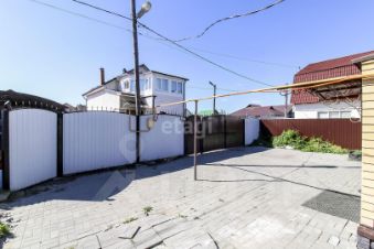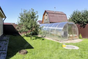 Участок разработан и ухожен, здесь растут плодовые деревья, а перед домом выложена брусчатка. Ворота и калитка выполнены из кованого металла, а забор из профнастила обеспечивает надежность и безопасность.