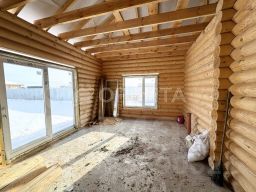 Материал постройки: Дом построен из оцилиндрованного бревна диаметром 220 мм, что обеспечивает отличную теплоизоляцию и экологичность.