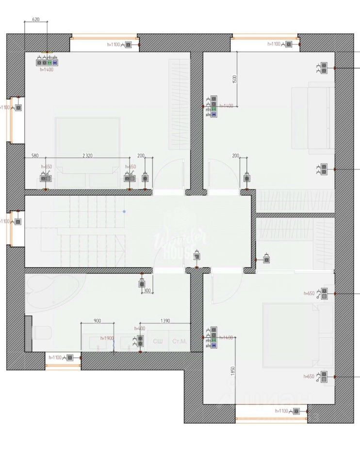 Дом подключен к центральному водоснабжению и электрическому отоплению.