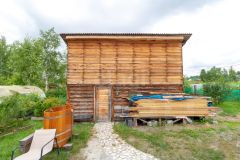 Стены дома выполнены из дерева и утеплены минеральной ватой, что обеспечивает отличную теплоизоляцию. В случае необходимости, часть стен, которая не зашита, может быть легко завершена — все необходимые материалы уже в наличии. Фундамент дома, бани и хозяйственной постройки выполнен в виде ленточного фундамента, что гарантирует долговечность и надежность.
