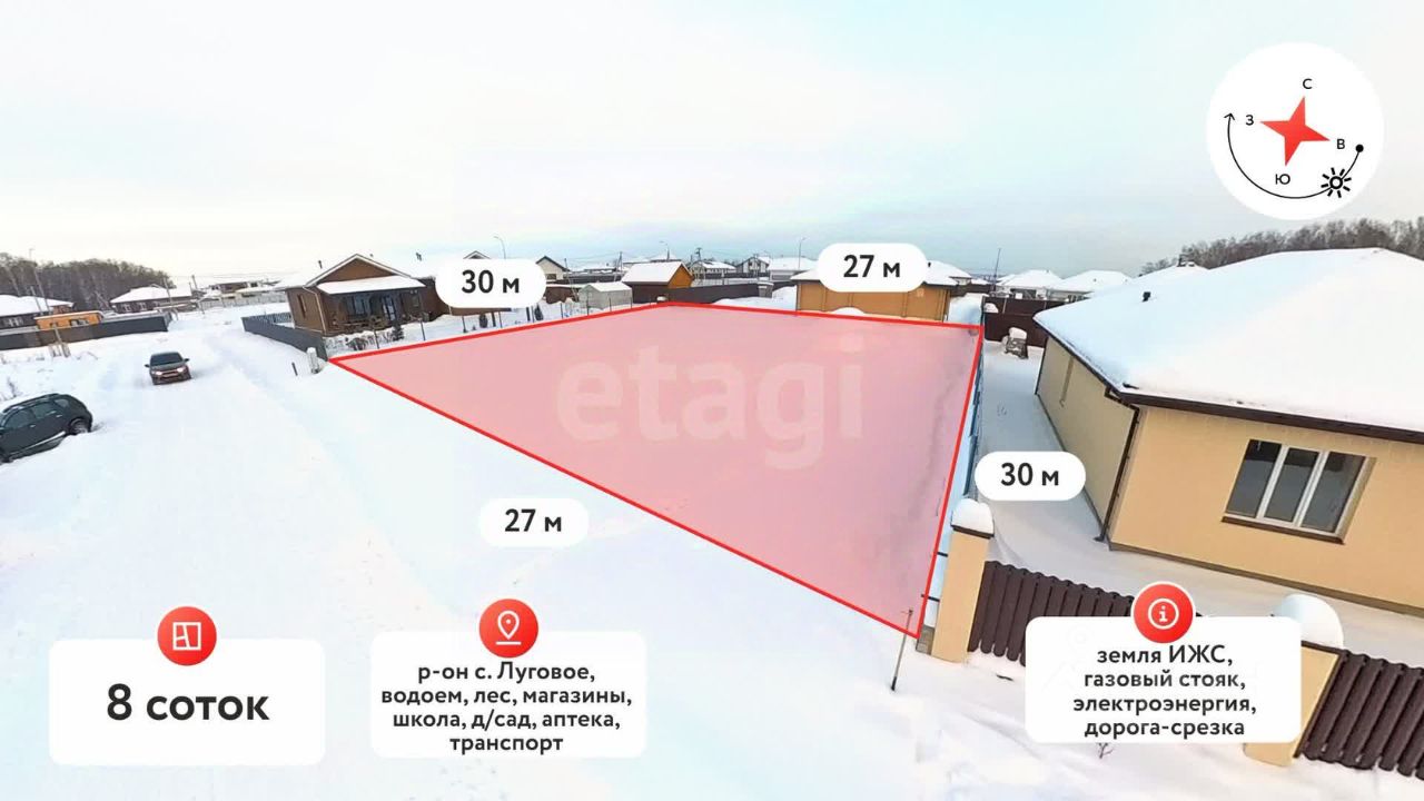 Участок площадью 8 соток правильной прямоугольной формы (27х30 метров) расположен в живописной природной зоне, возле леса. Это обеспечивает высокий уровень приватности и круглогодичные рекреационные возможности: зимой здесь действуют лыжные трассы, а летом доступен для купания расположенный неподалеку водоем. Для любителей активного отдыха в непосредственной близости находится территория Силкин Лог, популярная для катания на квадроциклах и снегоходах. При этом участок не изолирован от необходимой инфраструктуры: в радиусе одного километра находятся Луговская средняя школа и детский сад, сельский клуб, супермаркеты "Пятерочка" и "Монетка", конный клуб и Храм Святой Троицы. Развитая дорожная сеть позволяет добраться до городской объездной дороги на автомобиле за 10-12 минут, что обеспечивает удобную транспортную связность с областным центром. Участок с готовой природной инфраструктурой и социальным окружением представляет собой редкое предложение, оптимально подходящее как для строительства дома для постоянного проживания в экологически чистой среде, так и для создания загородной резиденции.