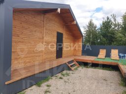 • Просторные террасы из хвойной доски для приятных вечеров на свежем воздухе.