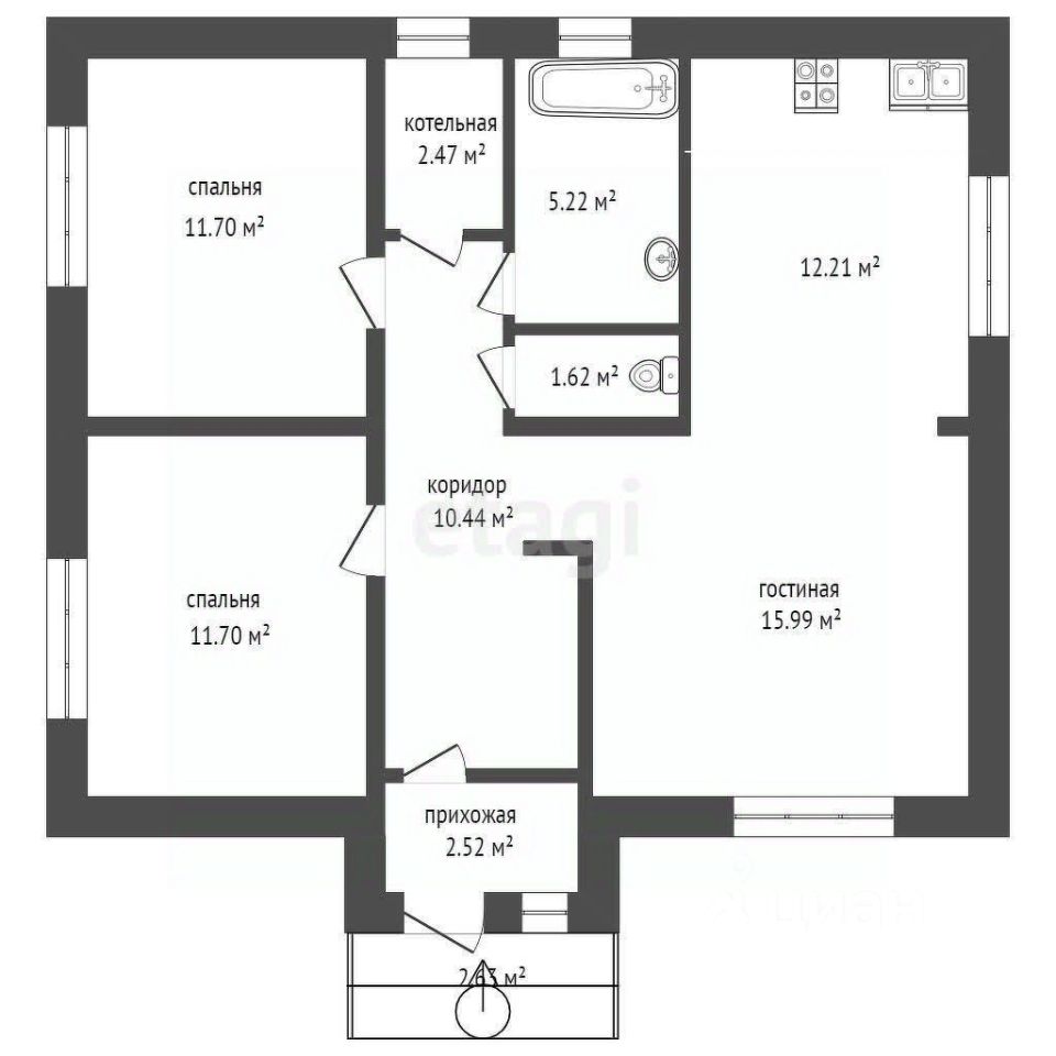 Планировка: 1 этаж, просторная кухня гостиная с выходом на террасу, 2 спальные комнаты, санузел, котельная, корридор, прихожая. Ограждение по периметру участка профнастил. Отделка предчистовая, стяжка, белые выровненные стены под поклейку обоев.