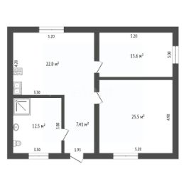 Продуманная планировка: кухня-гостиная 22 м кв., две изолированные комнаты 16 и 26 м кв., большой санузел 12.2 м кв.. При этом несущая стена одна - разделяющая коридор и комнаты. Можно планировать под себя, как пожелаете.