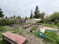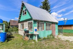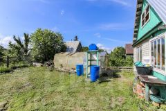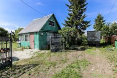 Участок огорожен и имеет индивидуальный закрытый въезд на улицу, что обеспечивает уединение и безопасность. На территории есть помещение для хранения инвентаря и теплица, которая требует небольшого ремонта.