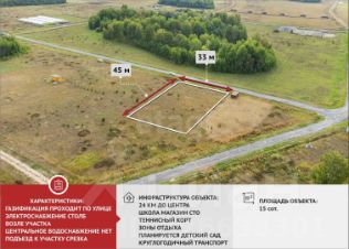 15 соток земли, места хватит не только для размещения дома, но и можно построить гараж на две машины, баню, организовать зону отдыха, развести огород, насадить цветов. Даже бассеин и детская площадка поместятся легко на этом участке.