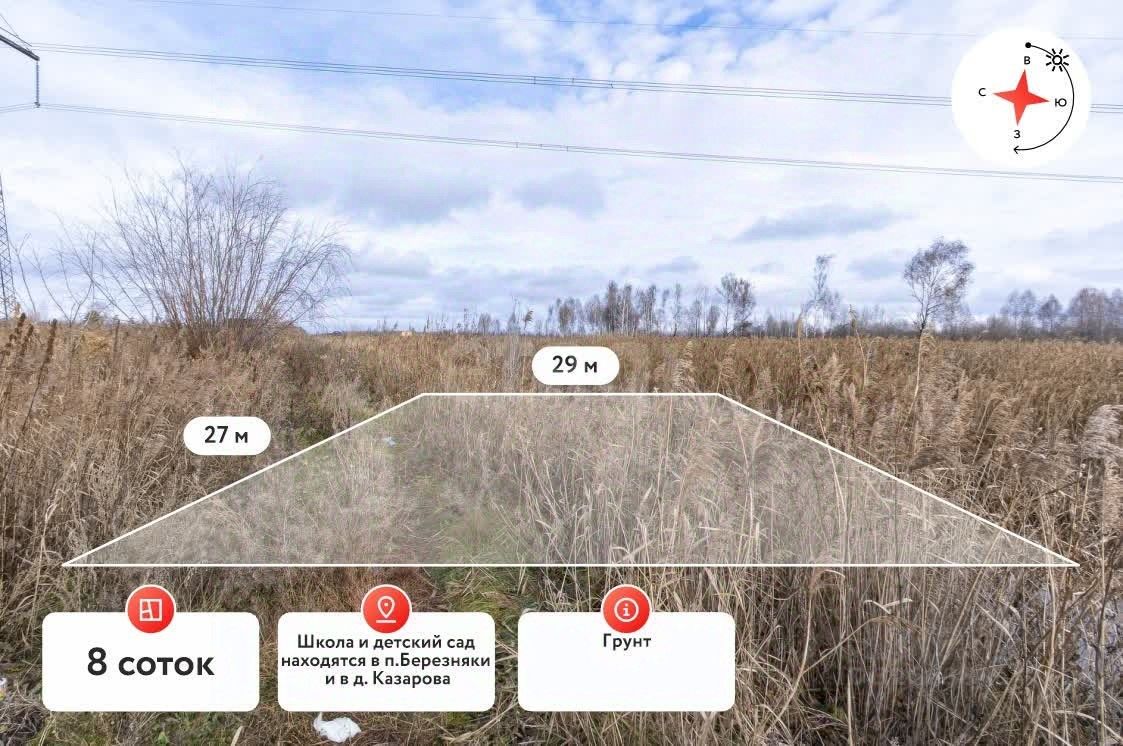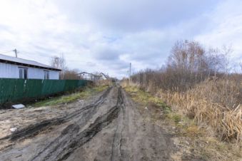 Дорога к участку грунтовая. Соседи вокруг строят дома для круглогодичного проживания.