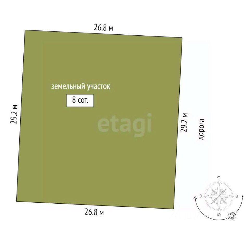 Участок 8 соток, правильной прямоугольной формы. Без построек.