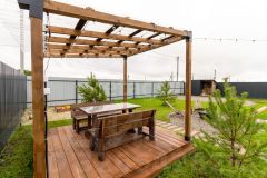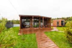 Безопасность обеспечивается установленной камерой видеонаблюдения. В доме установлены конвекторы с возможностью управления через Wi-Fi, что позволяет регулировать температуру даже на расстоянии. Полы с подогревом создают дополнительный комфорт в холодное время года. Также проведён высокоскоростной интернет, что делает этот дом идеальным местом для работы и отдыха.