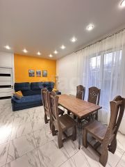 К дому подведены свет ( 30 кВТ), газ, скважина, септик на 6 кубов переливной. Отопление газовое, можно переключать на электрическое, в доме 2 водонагревателя, 1 электрический на 50 литров, газовый на 100 литров. Так же 2 котла, газовый и электрический.