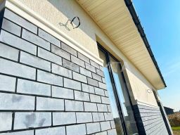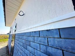 облицовка - силикатный кирпич ВЗКГ+ декоративная штукатурка короед (под штукатуркой перегородочный керамзитоблок 90мм).