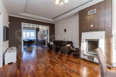 Кухня-гостиная +3 отдельные спальные комнаты. В цокольном этаже расположена сауна, спортзал, места хранения. Отличное состояние. Настоящий действующий камин на дровах расположен в гостиной. . Высокие потолки, шикарная широкая лестница на 2 этаж.Своя котельная. Отапливается газом. Центральные коммуникации - водопровод и канализация.