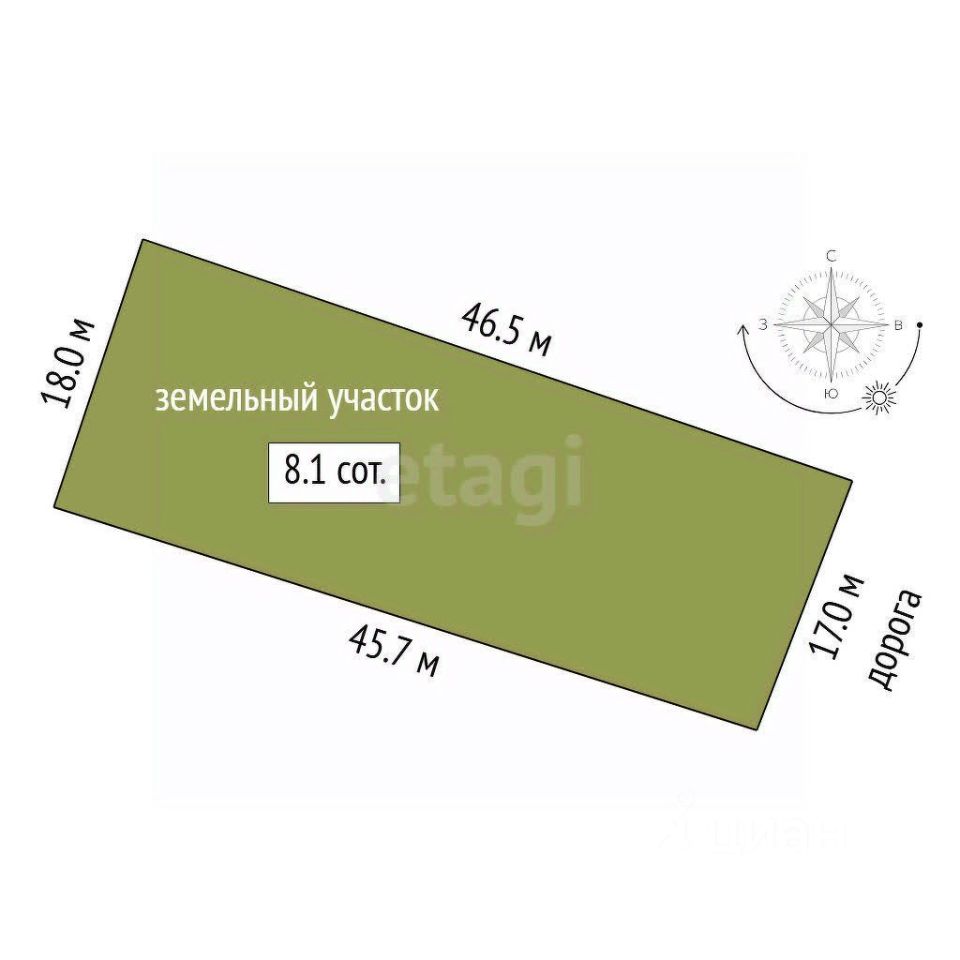 - Площадь участка: 8,11 сотки