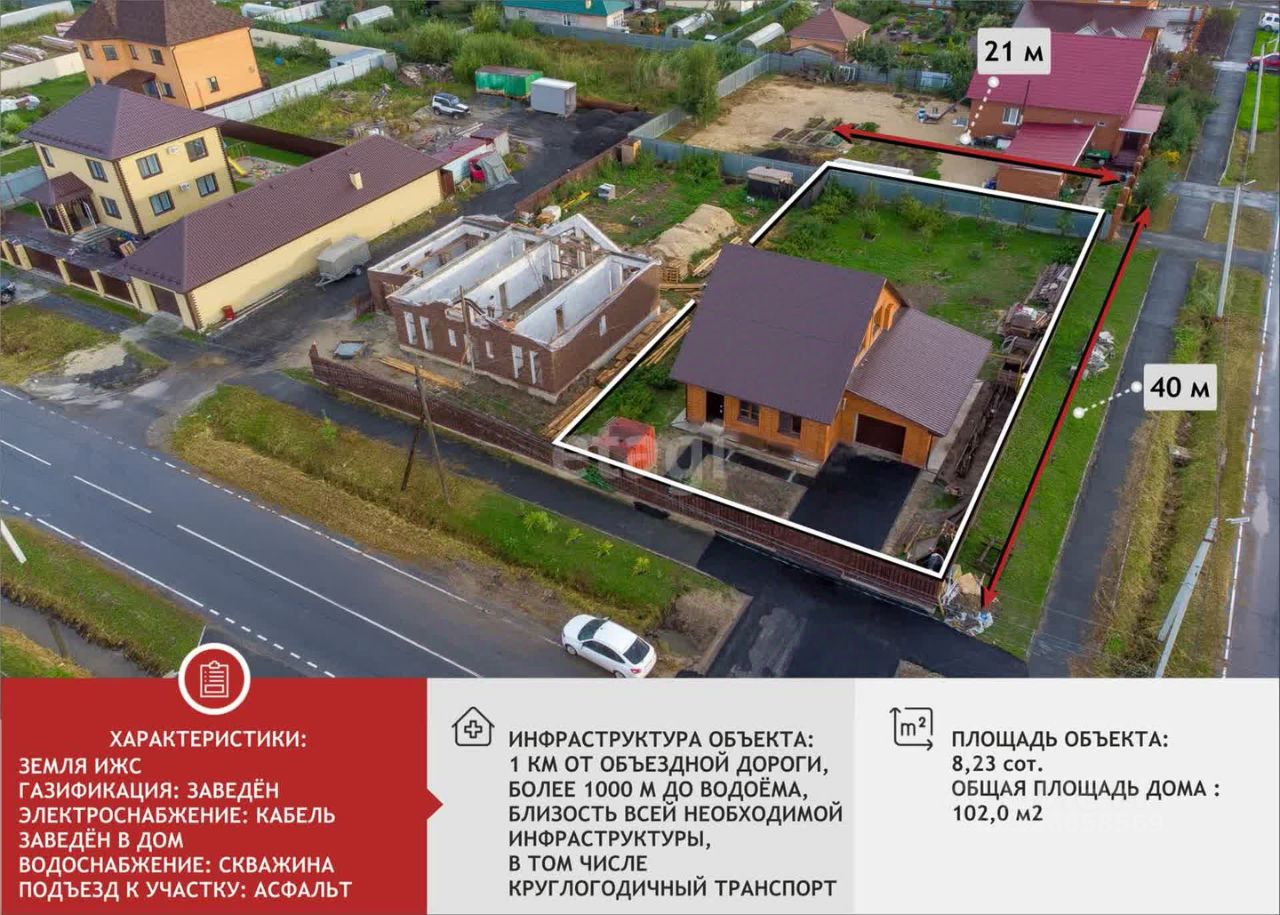 Участок ровный,правильной формы.К дому пристроен гараж; крыша дома закрыта металлопрофилем, вставлены пластиковые окна; установлены качественные входные двери; в доме черновая отделка.Санузел совмещенный. Коммуникации: вода из скважины заведены в дом, электричество 380 Вт уже подключено и заведено. Участок огорожен по всему периметру забором из обработанной и облагороженной доски.В шаговой доступности находятся новая школа 52, магазин Магнит, Светлое темное, Пекарня. Остановка общественного транспорта в 1 мин. ходьбы пешком.Возможна продажа двух соседних участков- стоимость обсуждаема.