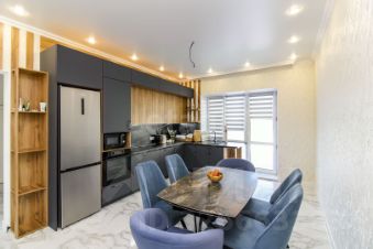 Компактный, новый дом с продуманной планировкой. Фундамент дома- трехметровые сваи, ленточный железобетонный каркас и сплошная железобетонная плита по всей площади дома. Стены- керамзитобетонный блок 40 см, утеплитель 10 см, керамический облицовочный кирпич. Ширина стены 62 см. Межэтажные перекрытия монолит железобетонный. Крыша- металлочерепица. Первый этаж- прихожая, котельная, санузел, кухня-столовая с эркером и гостиная в едином пространстве, 1 спальная комната. Второй этаж- 3 спальные комнаты, большая ванная комната. Коммуникации все разведены по дому. Водоснабжение- централизованное, канализация - септик, отопление от газового котла, электричество - разведено по дому. Отопление дома организовано по первому этажу с помощью водяных теплых полов и радиаторов, по второму этажу- только радиаторами. Участок огорожен профнастилом.