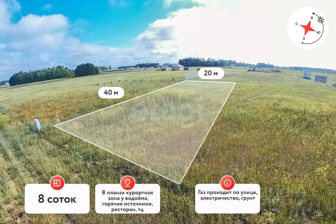 Коттеджный поселок активно развивается: соседи уже начали строительство, а в районе планируется создание курортной зоны у водоема, горячих источников, ресторана и торгового центра. Это не просто участок, а часть будущего комфортного и благоустроенного района с множеством прогулочных зон и удобной инфраструктурой.