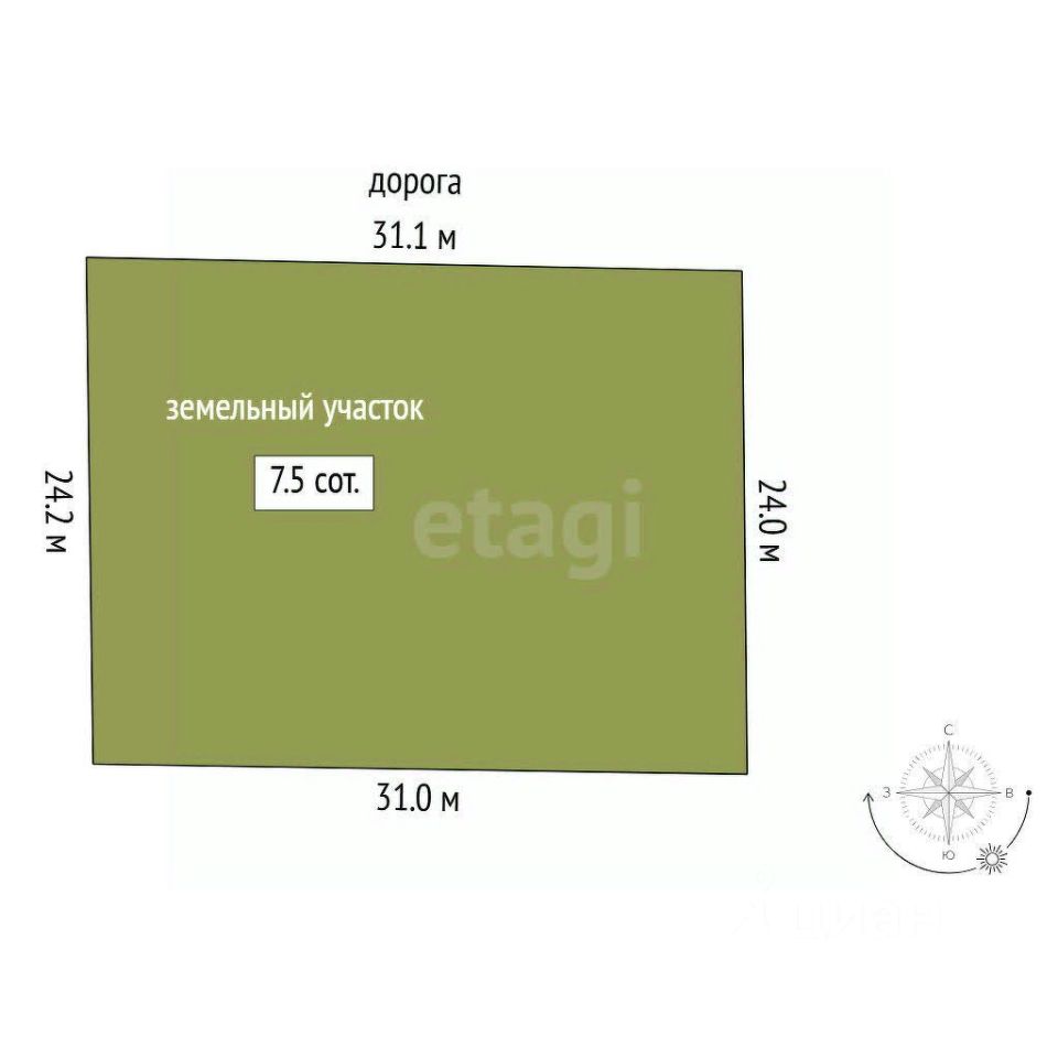 Участок правильной прямоугольной формы, широкий по фасадной части, что позволяет рационально разместить жилой дом, хозяйственные постройки и зоны отдыха.