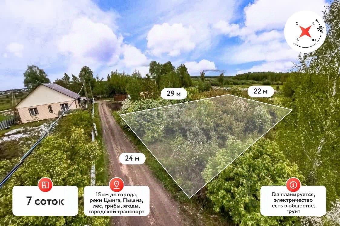Коммуникации: электричество заведено в СНТ. Возможность прописки. Планируется газификация в ближайшие годы.