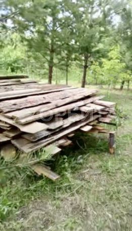 Участок частично огорожен, очищен от травы, веток, деревьев, поставлен каркас под беседку или бытовку. Останется 1,5 м3 пиломатериала.