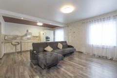 Дом построен в 2013 г., стены из керамзитоблоков, утеплен и обшит сайдингом под декоративный камень. Дом очень теплый и функциональный.
