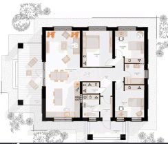 При входе в дом вы попадаете в прихожую 3,6 кв.м, рядом комфортно расположены гостевой санузел и гардеробная.