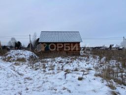 На участке — дом из бруса 150х150, 6х9 м, крыша из металлочерепицы. Внутри черновой пол и потолок, залит фундамент под печь/камин.