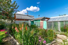 Участок 3,75 сотки, ухоженный и утопает в зелени, что создает атмосферу уюта и гармонии. Почва плодородная, все растет хорошо. Имеются все насаждения, много цветов. На территории расположены 2 теплицы, действующая баня из шпал, обшита досками. Есть колодец глубокий и всегда с водой. Имеется погреб-бак железный, овощи хранятся просто отлично.