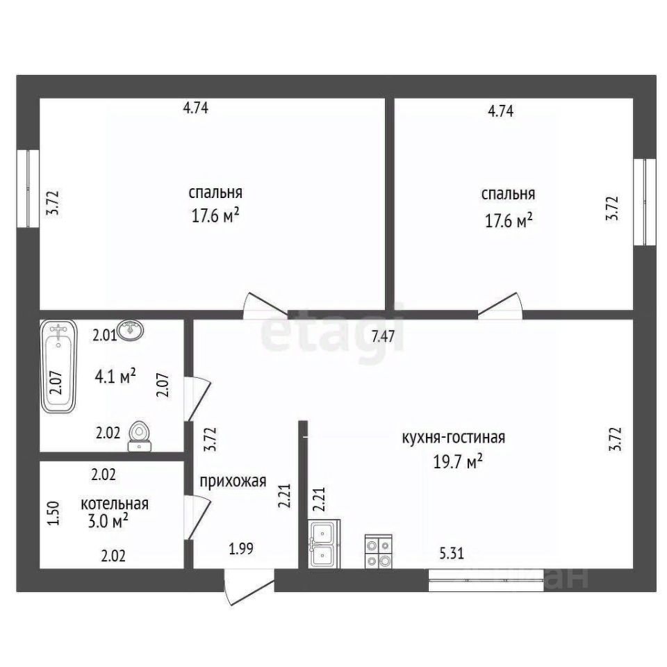 В доме 3 комнаты: кухня-гостиная и две спальни, планировка очень удобная.