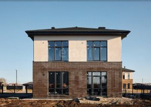 Материал стен: Стены дома выполнены из керамзитоблока марки М-50 толщиной 290 мм, что придает конструкции прочность и хорошую звукоизоляцию. Этот материал помогает поддерживать комфортный микроклимат внутри дома, обеспечивая тепло зимой и прохладу летом.
