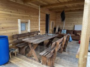 Продается полноценный загородный участок с кирпичным домиком в садовом обществе Солнечное для круглогодичного отдыха и проживания. Основное строение — двухэтажный дом общей площадью 40 кв. м с печным отоплением, полностью меблированный: кухонный гарнитур, бытовая техника, кровати и шкафы на двух этажах остаются новому владельцу. К дому примыкает просторная терраса с летней кухней, оборудованная столом и лавками. Отдельно стоит баня, обшитая осиной с полами из лиственницы, и совмещенная с комнатой отдыха. На территории также имеется гараж, используемый как хозблок, и дровяник.