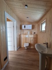 Бойлер в качестве накопительного нагревателя. Скважина с глубинным насосом и кессоном, с греющим кабелем в трубе для защиты от замерзания. Септик с возможностью откачки, что делает проживание полностью автономным. На полу ламинат 33 класса, межкомнатные двери, на стенах и потолках обшивочная доска. Также будут установлены душевая кабина, инсталяция и кондиционер.
