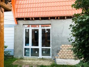 Дом из бруса с дополнительным пристроем из пеноблоков, утеплён минеральным утеплителем и обшит сайдингом.