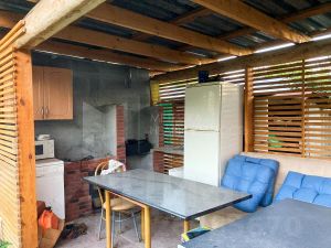 Есть недостроенная баня (обшита сайдингом, залит пол и выложен плиткой) и зона для барбекю с мангалом!