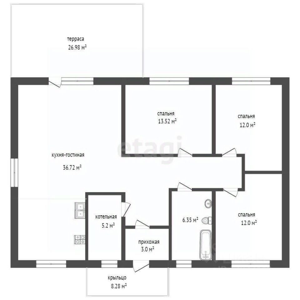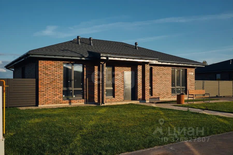 Готовый дом от юридического лица - без комиссии для покупателя! Подходит под все ипотечные программы. Внутри дома черновая отделка. Материал стен - керамзитоблок 290 мм + базальтовая вата 100 мм + керамический кирпич 120 мм. Дом одноэтажный, включает в себя: 3 просторные спальни, кухню-гостиную, а также большую террасу. Территория перед домами благоустроена. Забор по периметру, площадка для парковки на 4 машины, рулонный газон, ландшафтное освещение, тропинки в брусчатке. Преимуществами дома являются панорамные окна, а также витражное окно, которое выходит из гостиной с видом на ваш участок.