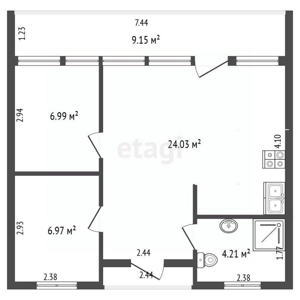 В доме 2 спальни, гостиная совмещенная с кухней, санузел с душевой кабинкой, крыльцо-веранда.