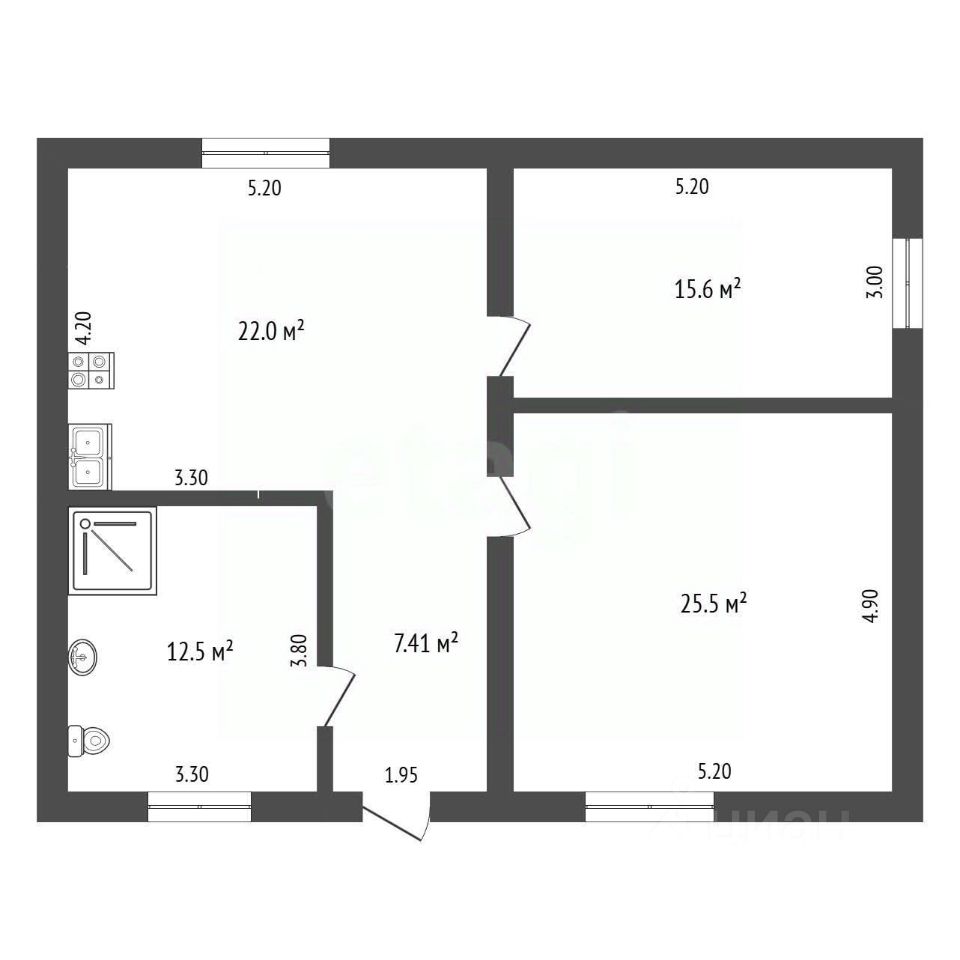 Планировка включает просторную кухню-гостиную площадью 22 кв. м, две изолированные спальни на 16 и 26 кв. м, большой санузел 8 кв. м и техническое помещение.