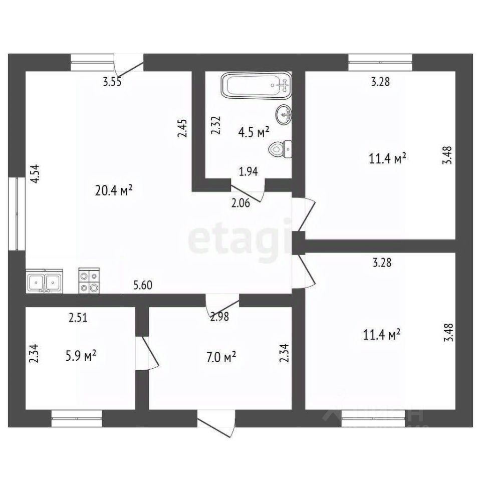 Предлагается к продаже уютный и продуманный дом формата 2+ площадью 60,6 м² в селе Мальково.