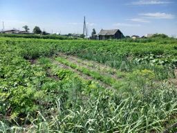 На участке уже есть теплица и разнообразные насаждения (огород/сад) — можно сразу пользоваться результатами.
