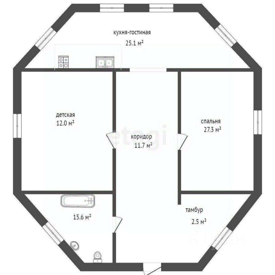 Уникальная восьмигранная архитектура — редкое и стильное решение. Высота потолков — 3,4 метра: просторно и светло.