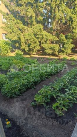 Большой сад с шикарной елью, двумя яблонями, грушами, вишней, жимолостью, малиной, земляникой, клубникой, крыжовником и многолетними цветами.