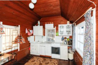 - Отделка интерьера: Внутренняя отделка выполнена из вагонки (натуральной древесины — лиственница).