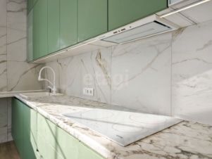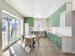 Планировка пространства создана специально для больших семейных праздников и теплых вечеров вдвоем: просторная гостиная-кухня плавно перетекает в террасы, манящие расслабиться после рабочего дня.