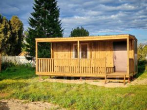 Основное строение — дом-вагончик общей площадью 20 кв. метров с пристроенной верандой, идеально подходящей для отдыха на свежем воздухе. Также на территории имеется уличный туалет.