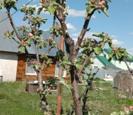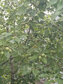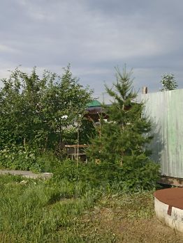 На участке имеются две взрослые северные лиственницы, плодоносящие яблони, вишни, груша, кусты чёрной смородины и малины.